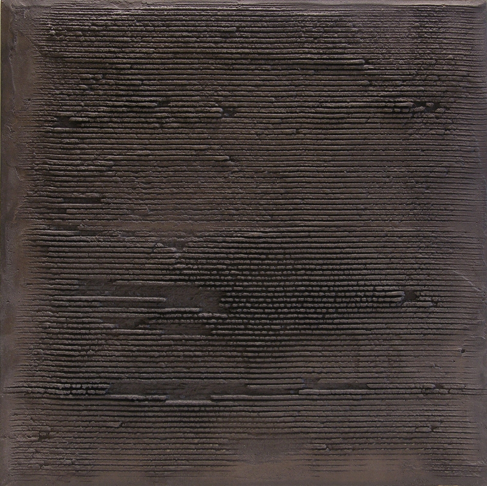 Stries 05 (2002) béton polyphosphate, pigment et verni sur bois. 45 x 45. Expos : |
