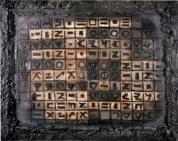 La série "Palimpsestes" proposent une réflexion sur l’étagement des campagnes de tracés qui s’accumulent dans l’épaisseur d’un même support : une feuille de plomb sur laquelle plusieurs couches fines d’enduits ont enregistré successivement différentes graphies, dans l’esprit des écritures nerveuses de C.Y. Twombly. Léger brouillage des lignes qui se superposent en effaçant imparfaitement les tracés antérieurs, mémoire des traces anciennes qui persistent sous la forme nouvelle : il est question ici de la quatrième dimension du signe, le temps, qui articule le... [Lire la suite]