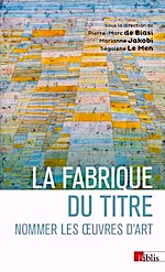 La fabrique du titre. Nommer les oeuvres d'artsous la direction de Pierre-Marc de Biasi, Marianne Jakobi et Ségolène Le Men, Paris, collection Génétique, CNRS Éditions, 2012, 458 p.